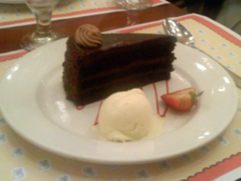Gauteau au chocola - Chocolate mousse cake, vanilla ice cream.